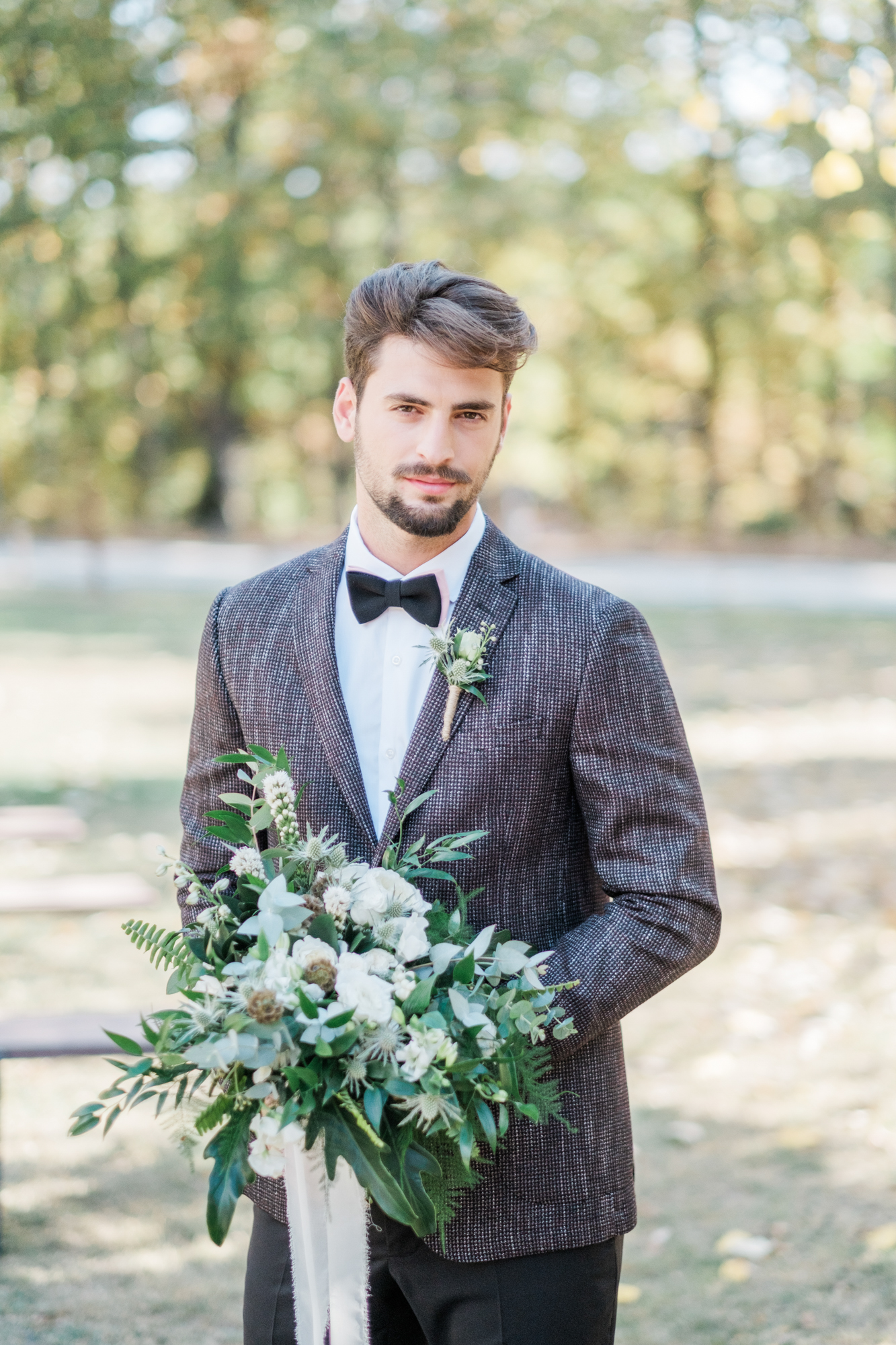 So the forest’s unique color was combined with the white wedding dress, flowers, cake and defined our color palette.