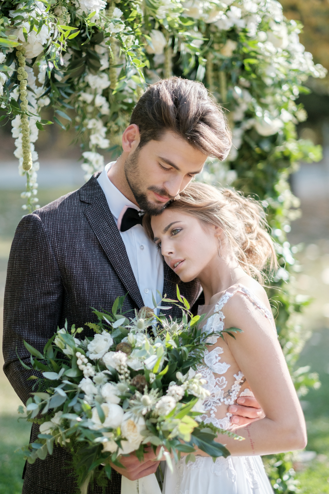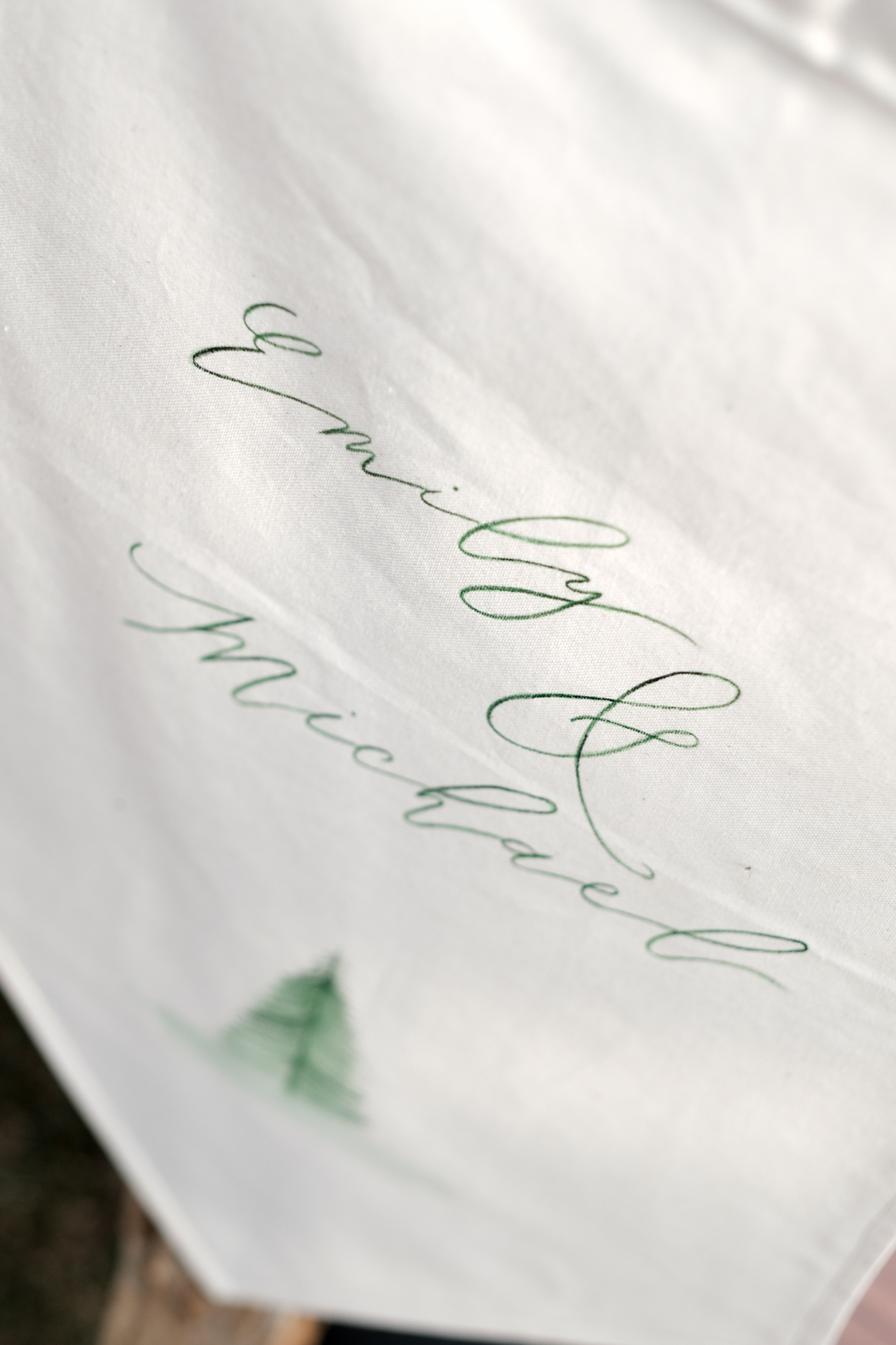 The stunning wedding dress was picked for its elegancy and clean line. The custom stationary line was created using calligraphy, pine and fir tree details on a unique hand cut paper. The naked cake was created to complement the shoot concept and was decorated with fresh pine twigs and leafs.